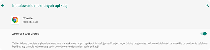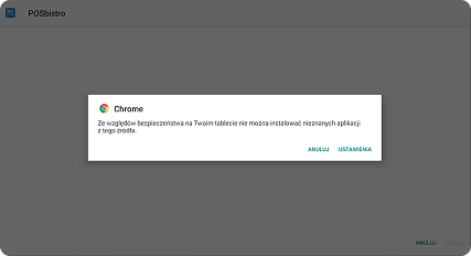 Jeśli na ekranie pojawi się komunikat “Ze względów bezpieczeństwa na Twoim tablecie nie można instalować nieznanych aplikacji z tego źródła” wejdź w “USTAWIENIA”