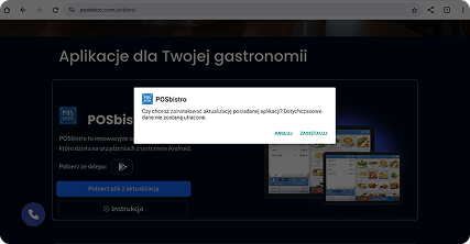 Zaktualizuj wszystkie urządzenia w lokalu, na których znajduje się aplikacja POSbistro.